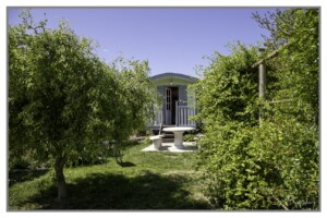 - Installée sur le terrain des propriétaires dans un cadre idyllique. Vous disposez d’un espace privé, d’un parking dans la propriété, d’un salon de jardin en pierre, barbecue et transats.